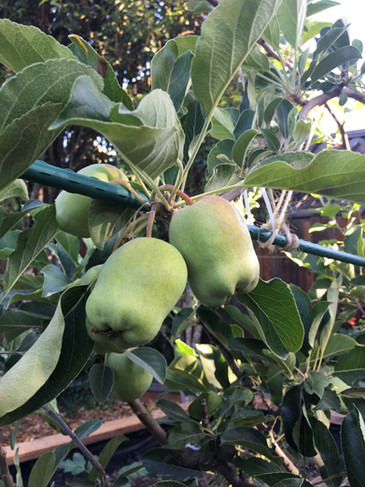 - Our espaliered apple tree set lots of apples.